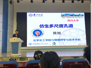 “双聘”教授、四川大学知名校友侯旭,受我校杨为中教授的邀请,在望江校区第三教学楼演播厅举行了以“仿生液体门控技术”为课题的学术报告会,为前来听讲的50余名同学及老师展示了他在多孔膜科学与技术领域的最新研究成果。