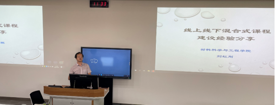刘虹刚老师结合自身建设省级一流混合式课程《材料力学基础》的经验,介绍自己在建设过程中遇到问题和思考:如何区别线下教学和线上授课内容?如何督促学生在课前自学?这也就对任课教师提出了挑战。线下教学设计必须重塑,提前让助教收集学生学习疑问和难点,增加线上练习和线下例题讲解,在“指标”指引下创新。