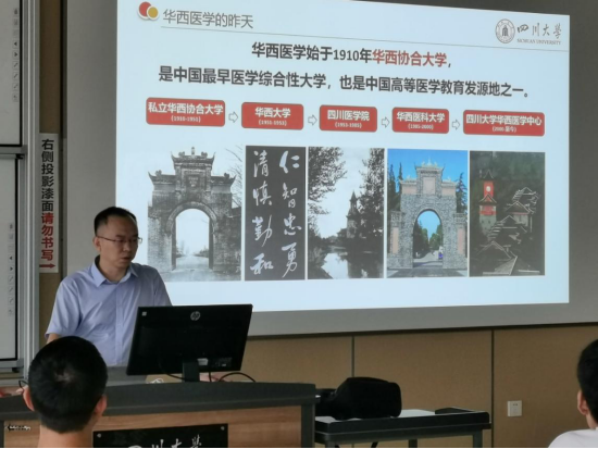 林老师在介绍中讲到,华西医学始于1910年华西协和大学,是中国最早的医学综合性大学,底蕴深厚,并入川大后,逐渐发展为川大的优势专业,是当前医工融合的建设重点之一。从开始时的专一医学,到现在的医工融合,林老师用华西医学的发展告诉同学们医工融合是当下医学发展最正确的道路,是时代的需要。而90足球网