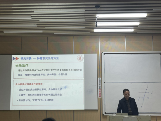 首先,我们要善于发现问题。尹教授从定义出发,给同学们解释了肿瘤的含义和特点,指出其对人类健康的危害之大。同时,尹教授介绍,现阶段肿瘤诊疗还存在很多局限,由此突显了对新兴肿瘤诊疗手段的迫切需要,进而引入对光热治疗的详细研究案例。