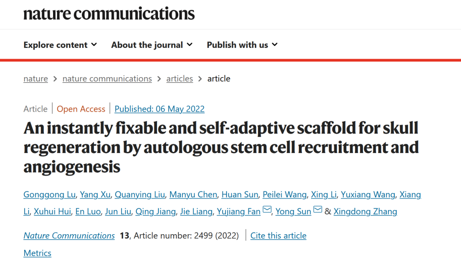 近日,张兴栋院士团队樊渝江教授和孙勇研究员课题组在Nature Communications上发表题为“An instantly fixable and self-adaptive scaffold for skull regeneration by autologous stem cell recruitment and angiogenesis”的研究论文。论文共同第一作者为博士后卢恭恭、博士生徐扬;华西医院神经外科惠旭辉教授,华西口腔医院颌面外科罗恩教授,90足球网