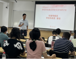 校榜样思政课程负责人芶立教授和何凌副教授分别分享了自己课程思政的心得。芶立教授从细节出发,将课程思政融入课堂教学全过程当中,强化学生家国情怀、激发对科学研究勇攀高峰的热情。何凌副教授从课程思政申报为出发点,引出课程中隐藏的思政元素并加以提炼,并提醒申报书需要注意事项。