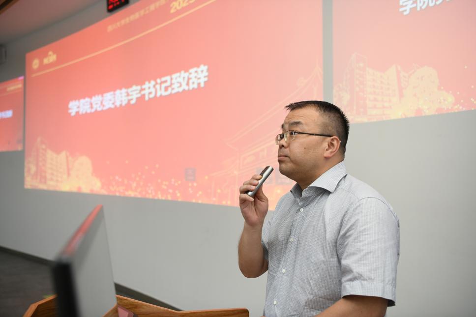 党委韩宇书记致辞。韩宇书记表达了对同学们坚持科研的殷切期望,鼓励同学们孜孜不倦,刻苦学习。他强调同学们要牢记使命,坚守对国家、民族和社会的郑重承诺,将个人的奋斗融入国家和民族的伟大事业中。