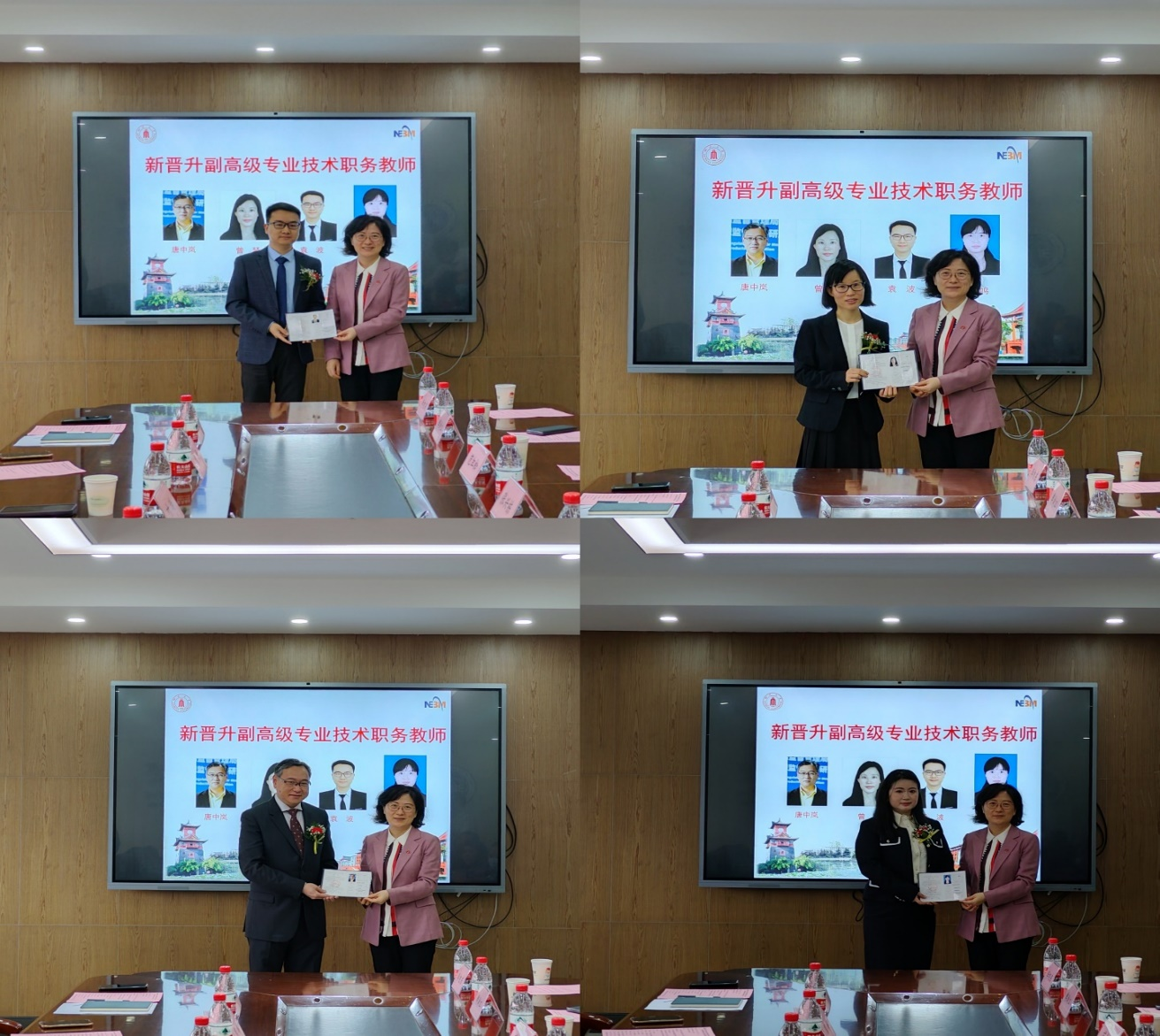 宣读学校的聘任决定,副校长叶玲为新晋副高级专业技术职务教师颁发聘书。