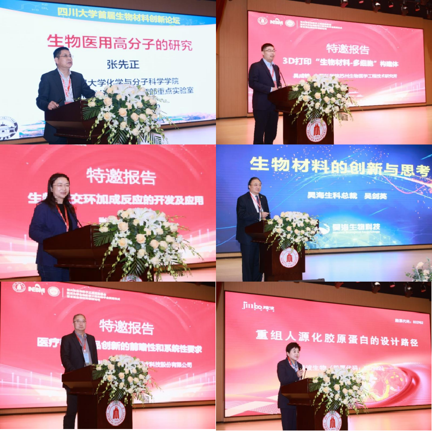 颁奖仪式后,举行了首届生物材料创新论坛暨首届青年学者论坛。来自全国各地高校、研究所和企业的杰出专家与教授莅临生物材料论坛。此次论坛聚焦前沿热点研究,深入探讨生物材料领域的前沿技术、创新应用以及科技成果转化等关键议题,专家学者们分享了生物材料及提料器械多个关键领域的最新研究成果和产业转化进展,包括生物医用高分子、多细胞生物材料、重组人源化胶原蛋白等,为生物材料领域的未来发展提供了宝贵的思路和明确的方向。