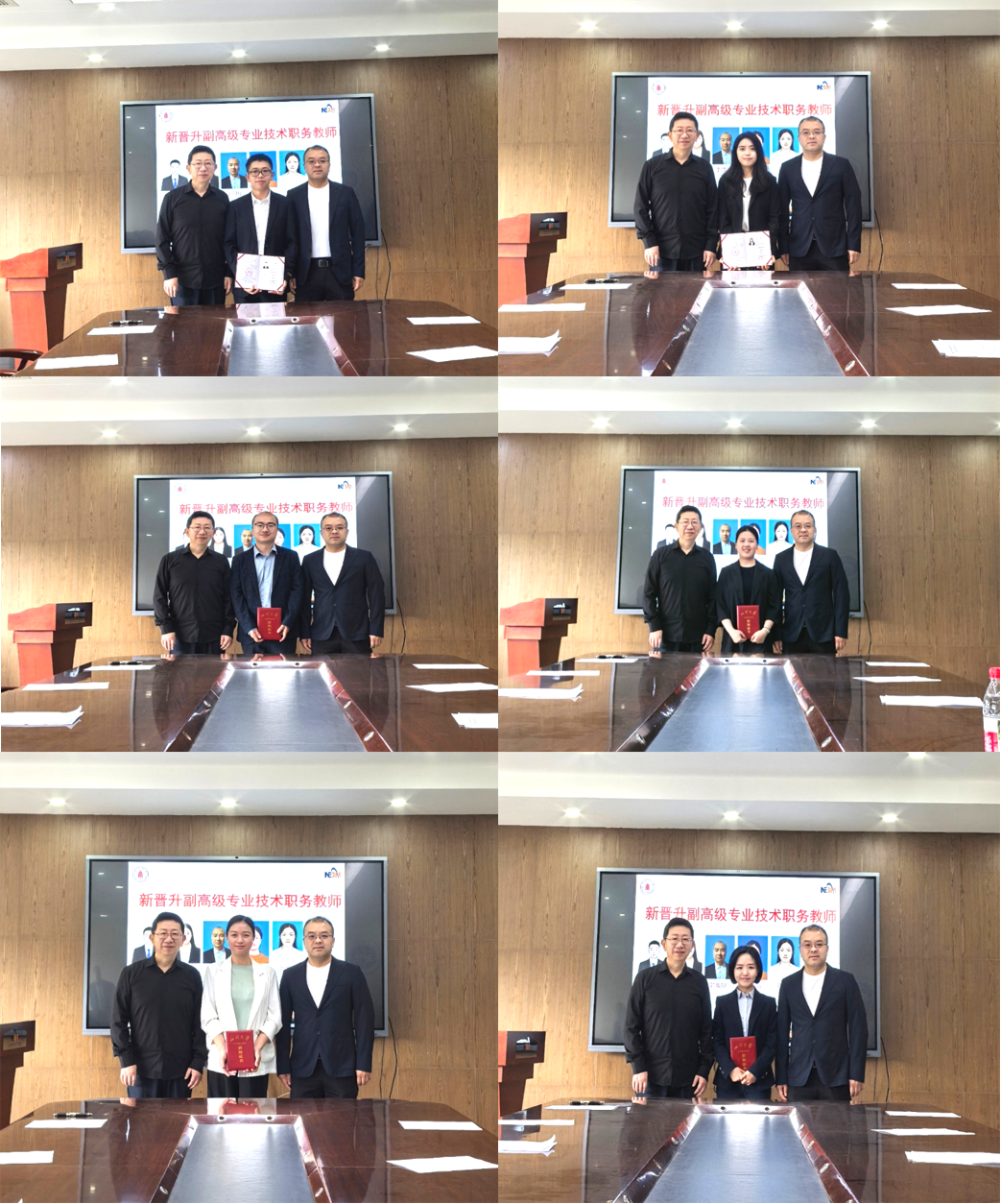 宣读学校的聘任决定,王云兵院长为新晋副高级专业技术职务教师颁发聘书。