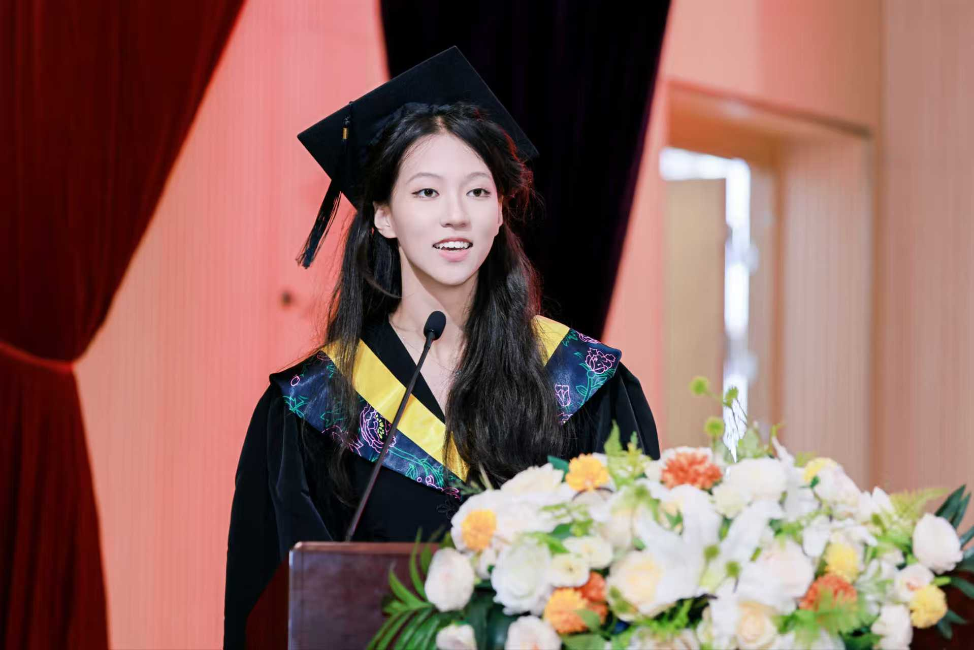 2021级本科生张淑雅同学作为毕业生代表在典礼上深情回顾了自己在川大生医的求学成长时光,并对母校的悉心培养、恩师的谆谆教诲致以最诚挚的感谢。