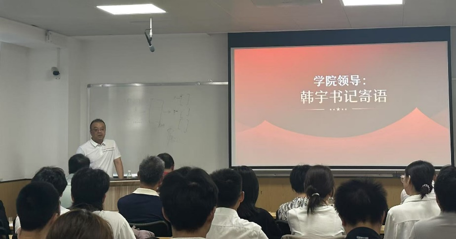 党委书记韩宇讲话。他谈到,人工智能正以不可阻挡的态势重塑传统专业和传统行业,智能医疗器械工程微专业为同学提供了难得的迎接变革的机会,希望同学们珍惜机遇、认真学习!