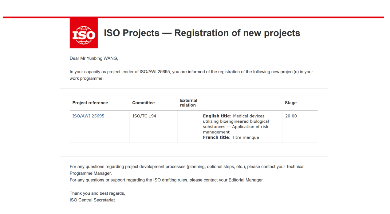 全球首个针对生物工程生物物质医疗器械风险管理的国际标准立项