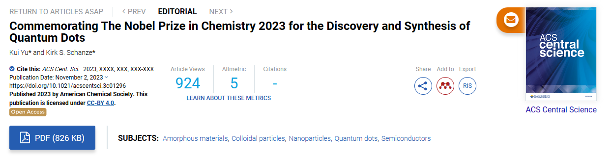 英文标题:Commemorating The Nobel Prize in Chemistry 2023 for the Discovery and Synthesis of Quantum Dots