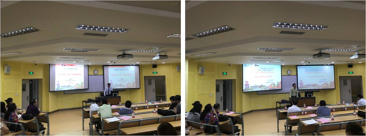 接下来,90足球网 院长赵长生教授以“树立目标,成为一名优秀研究生”为题,回顾了我国研究生招生的历史,阐述了研究生学习的重要意义,希望同学们将研究生阶段作为一个新的起点,通过树立明确的目标,投入充足的精力,开拓广阔的视野,积极和导师及师兄师姐交流,阶段性地总结成果,最终成为一名优秀研究生。