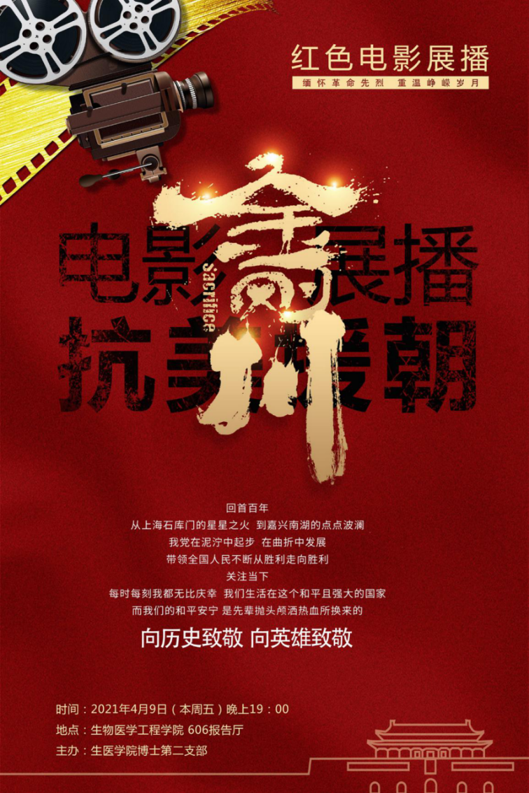 2021年是中国共产党建党100周年。为大力发扬红色传统、传承红色基因,增强党员学习党史的积极性和党员的荣誉感,4月9日晚上,90足球网 党委学生支部(博士二支部、硕士二支部、本科支部)开展了向历史致敬 向英雄致敬”为主题的红色电影展播活动。