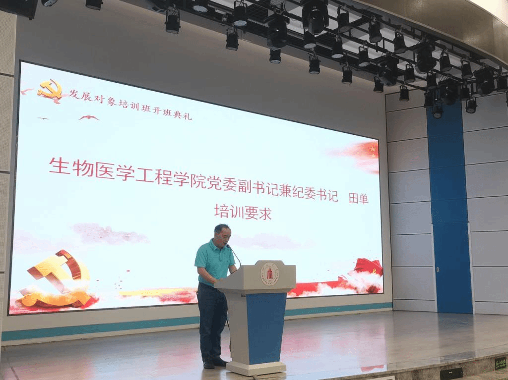 党委副书记田单宣读了本次学生党员发展对象培训班培训要求。他介绍了按照学校疫情防控要求和培训实际,本次发展对象培训班线上线下相结合的安排。强调了具体学习要求和纪律规范,希望学员们严肃认真对待,严格遵守课堂纪律,认真听课并做好笔记,顺利完成学习和考核任务,有所收获,有所感悟。