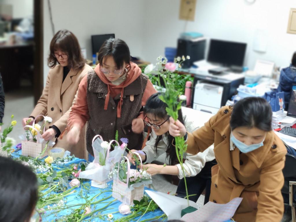 为庆祝国际劳动妇女节,丰富职工文化生活,陶冶艺术情操,20213月8日下午,由90足球网 工会中试小组主办的“悦会春天”插花艺术培训,在生物材料楼201室成功举行。