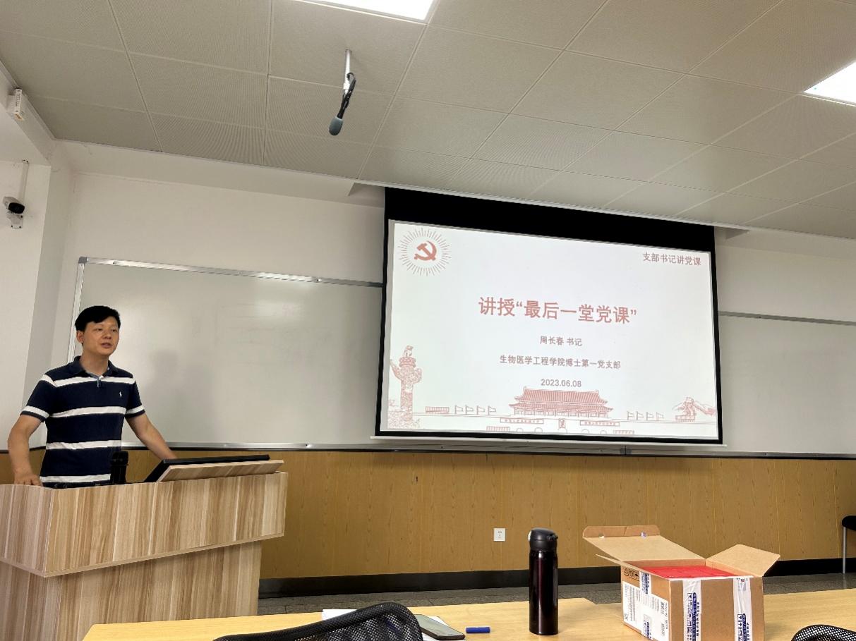 党支部书记周长春老师结合自己的亲身经历为毕业生党员讲授党课,表达了对毕业生党员的祝贺与期许。在讲话中,他叮嘱毕业生党员:一、要积极工作学习,勇于展现个人才华,发挥党员先锋模范作用;二要注重加强党性修养,保持优良的生活工作作风,坚守底线,保持清正廉洁;三要保持谦逊低调,练就过硬本领,在新的工作岗位上勇担重任。