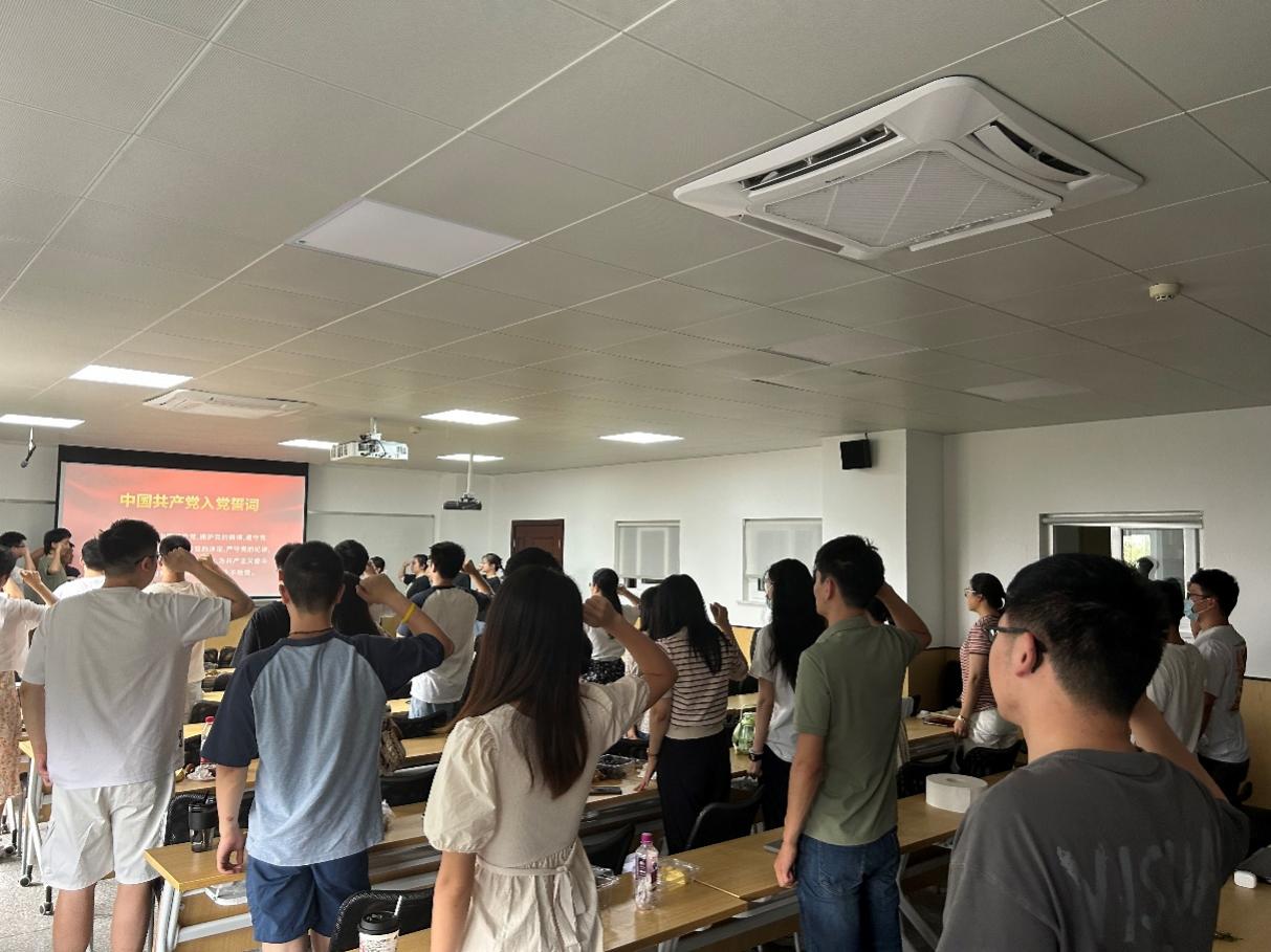 最后,全体党员在周长春书记带领下,重温入党誓词。誓词铮铮,是毕业生党员同志对入党初心的坚定,是新征程中矢志不渝跟党走的信仰,是为实现中华民族伟大复兴贡献自己力量的决心。相信毕业生党员同志们将不忘初心,砥砺前行!